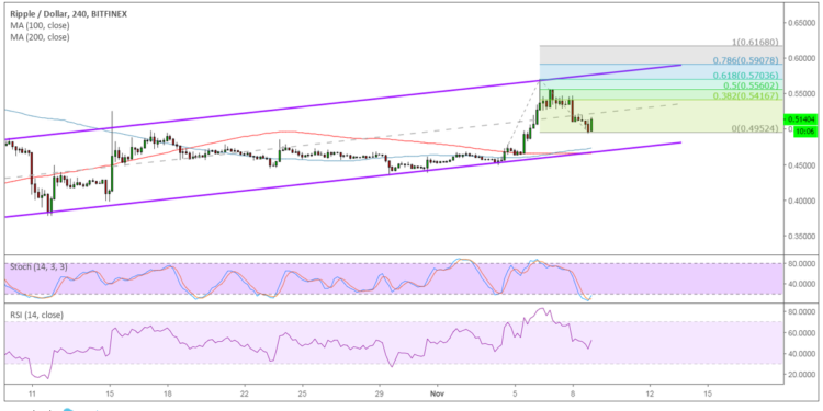 If this is enough to keep losses in check, XRP could make its way back up to the top of the channel or the upside targets marked by the Fibonacci extension tool. The 38.2% level is just past the mid-channel area of interest while the 50% level lines up with the swing high. The 78.6% level is closer to the channel resistance and .6000 major psychological mark while the full extension is at .6168.